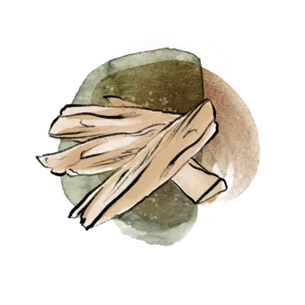 Würzige Ambra-Akkorde kombiniert mit kräftigen Holznoten von Patschuli, Sandelholz und Oud.Hölzer